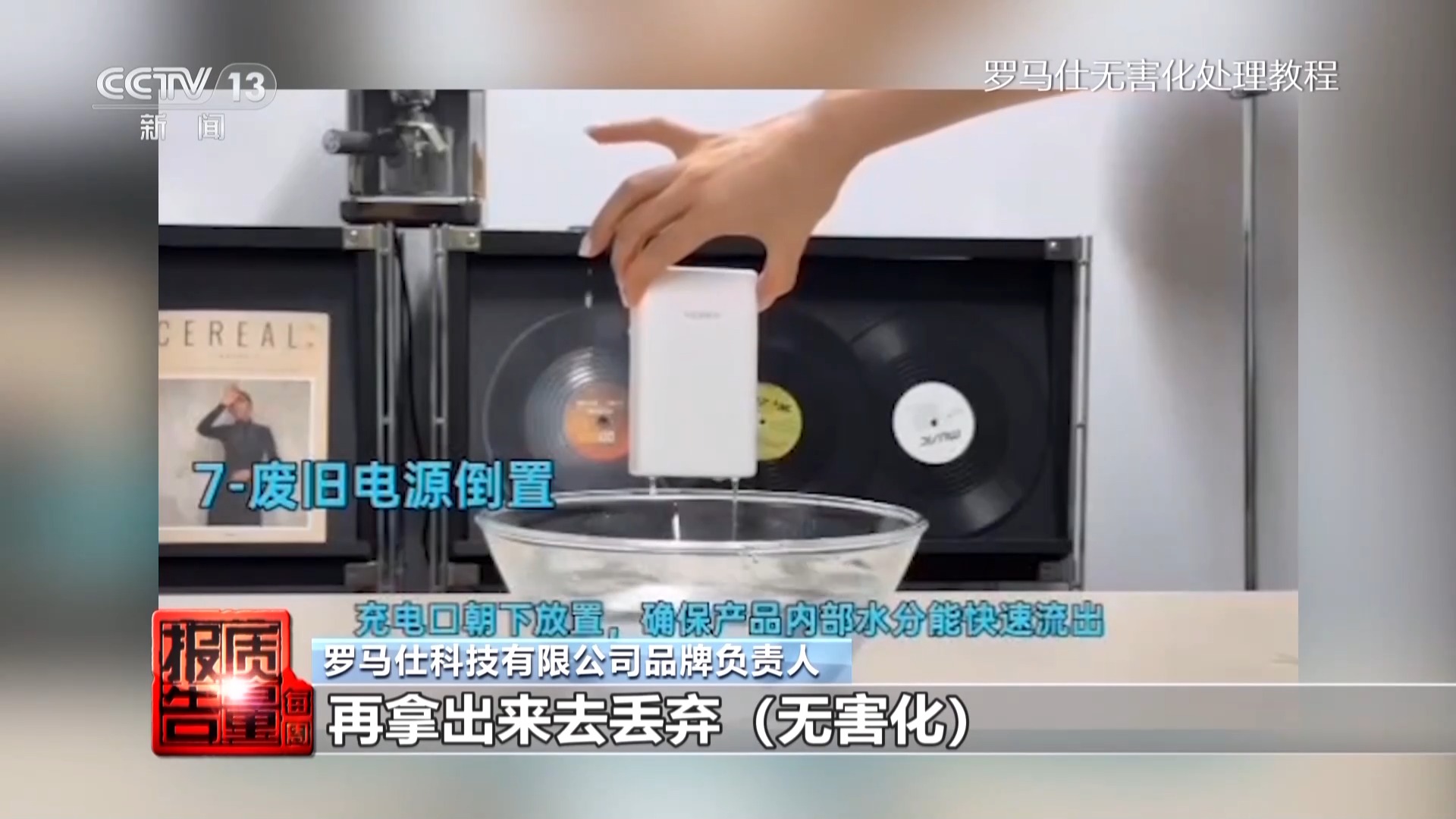 罗马仕科技有限公司品牌负责人:客户是有一个自行处理的过程,比如说放在盐水里面浸泡,然后等到几个小时(24小时)以后再拿出来去做丢弃(无害化),或者寄回我们这边来,我们去做一个处理,然后进行退款的服务。
