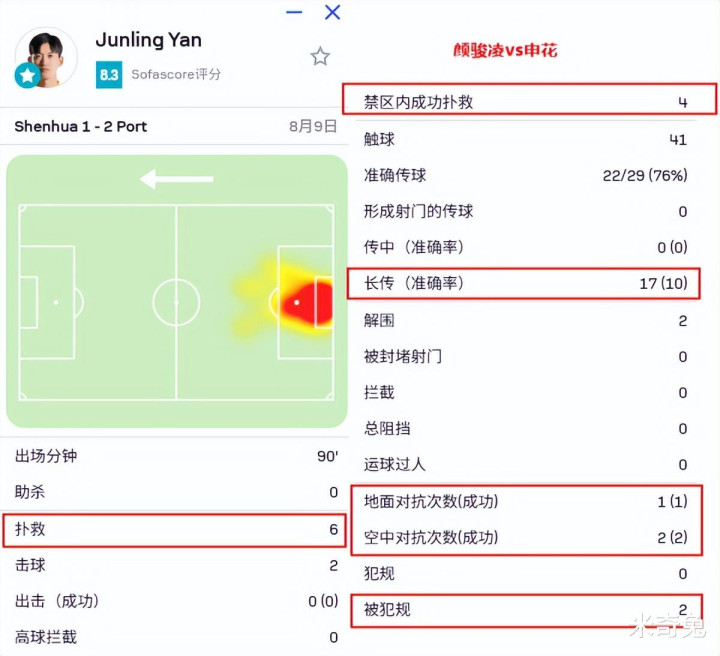 本场上海海港赢球,还需要重点表扬两个人,一个是门将颜骏凌。他本场完成6次成功扑救,其中4次是禁区内射门,另外3次一对一对抗全部成功,还遭遇申花球员2次犯规。