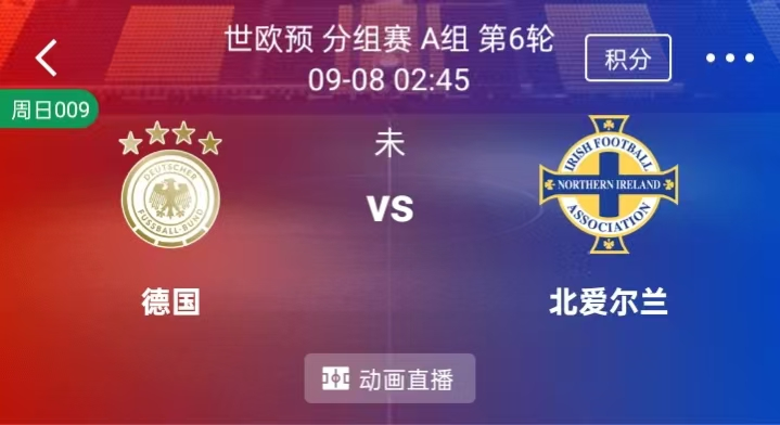 周日 009 世欧预:德国VS北爱尔兰